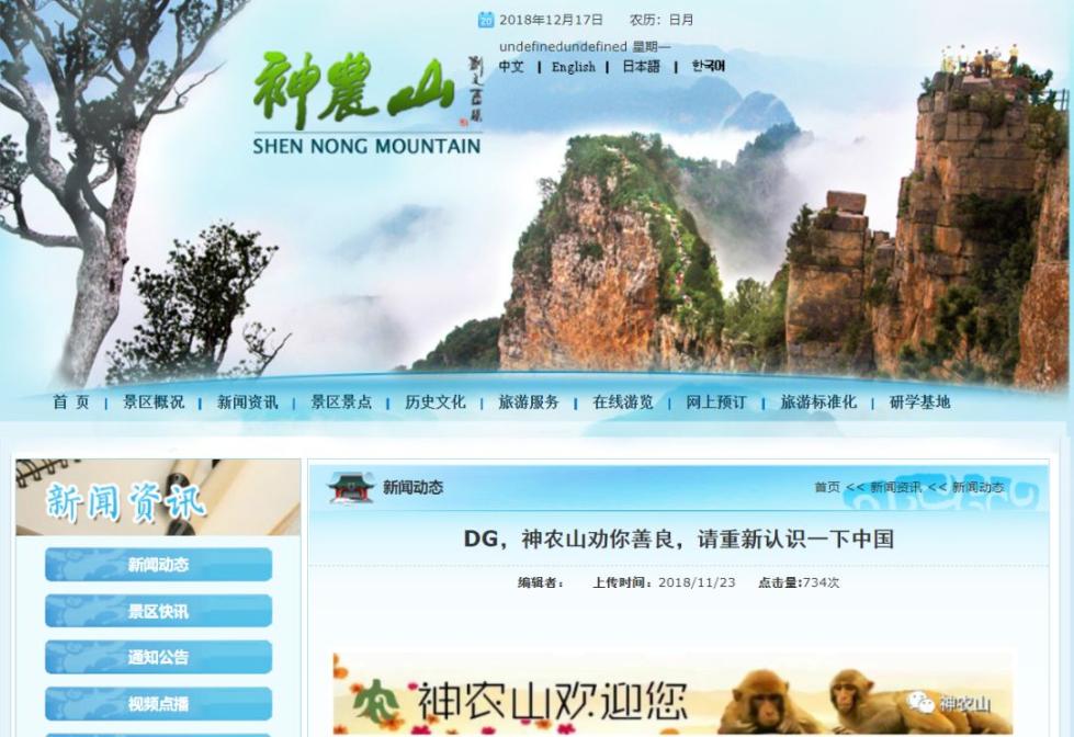 神农山景区的网站上此前还发表过规劝D&G(杜嘉班纳)的文章。