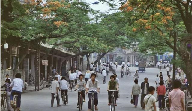 20世纪80年代初,公园南路上班族骑着自行车上班