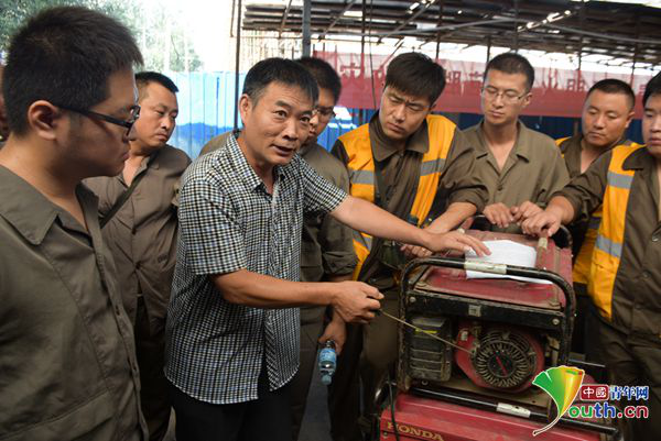 保定工务段保定综合机修车间主任张立昌介绍新型养路机械使用方法。本人供图