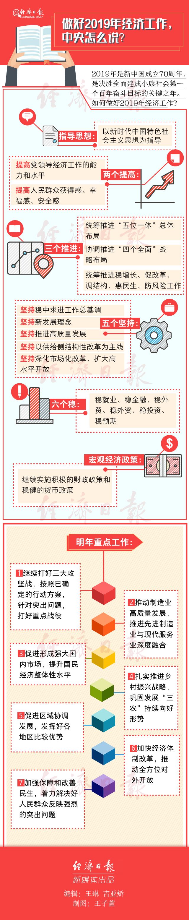 2019年是新中国成立70周年,是决胜全面建成小康社会第一个百年奋斗目标的关键之年。2019年经济工作重点将围绕哪些方面展开,成各界关注焦点。