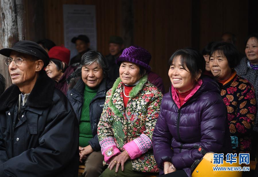 江西省都昌县多宝乡马家堰村村民在观看采茶剧《保护候鸟,人人有责》(12月20日摄)。 (配本社同题文字稿) 新华社记者 万象 摄