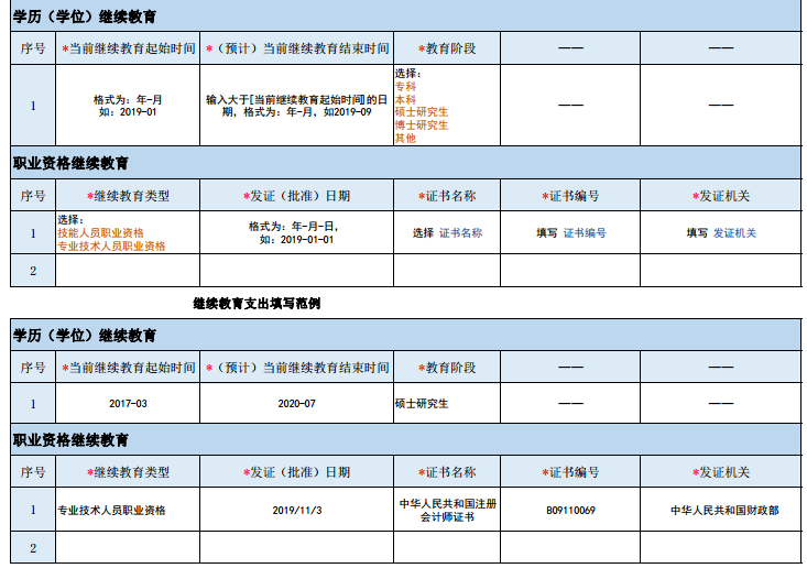 继续教育专项附加扣除填写范例