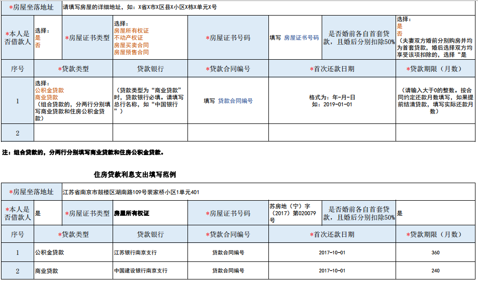住房贷款利息专项附加扣除填写范例