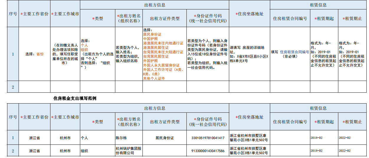 住房租金专项附加扣除填写范例