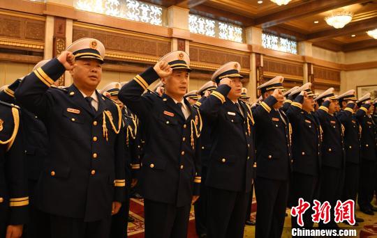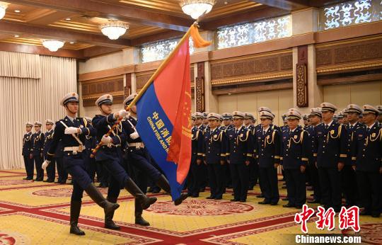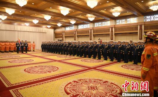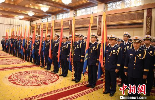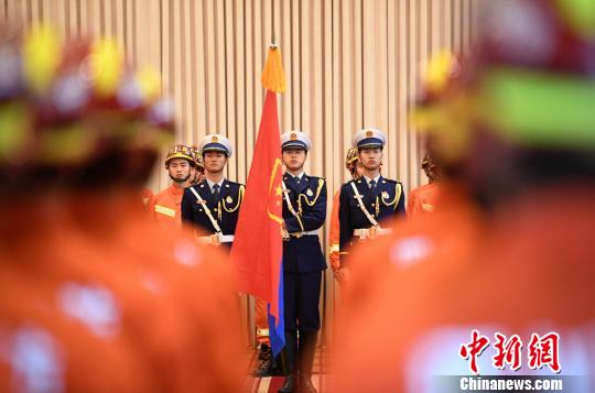 四川消防救援总队授旗授衔换装宣誓仪式现场。 刘忠俊 摄