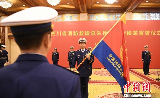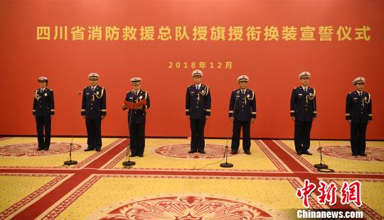 12月26日下午,四川省消防救援总队授旗授衔换装宣誓仪式在成都举行,来自该省各市(州)消防救援支队的200余名代表参加。长期以来,四川消防救援队员不忘初心、牢记使命,先后参与了四川汶川特大地震、芦山地震、九寨沟地震、兴文地震以及青海玉树地震、云南彝良地震、甘肃舟曲泥石流等应急灾害救援,为保障人民群众生命财产安全、促进经济社会发展作出了突出贡献。