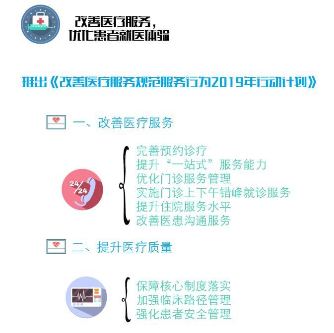 记者注意到,除改革方案和价格文件外,本次还同步印发了《改善医疗服务规范服务行为2019年行动计划》。通过推动预约诊疗服务等6项措施,继续改善医疗服务。