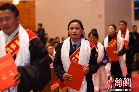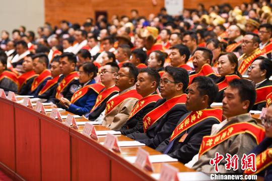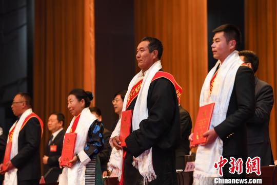 西藏官方27日在拉萨举行会议,表彰西藏自治区第七批驻村工作先进集体、个人和优秀村(居)党支部第一书记。 何蓬磊 摄