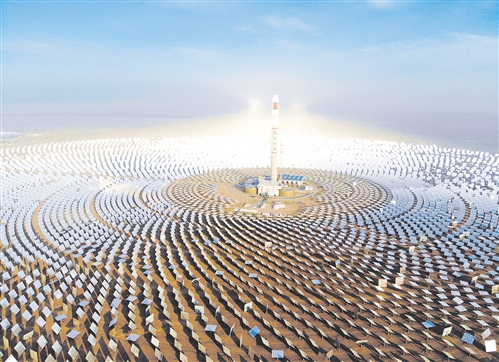 电站占地7.8平方公里,1.2万多面定日镜以同心圆状围绕着260米高的吸热塔,镜场总反射面积达140多万平方米。并网发电后,该电站年发电量将达3.9亿千瓦时,每年可减排二氧化碳35万吨,可创造经济效益3亿元至4亿元。