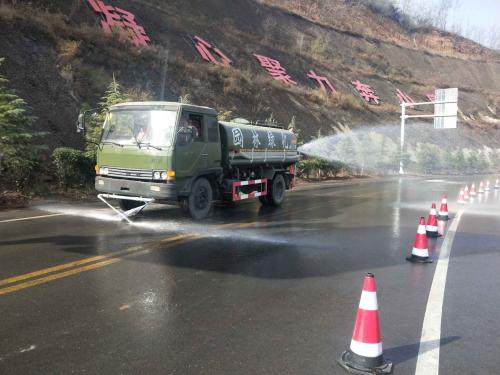 河南省交通运输行业严打扬尘污染问题,图为洒水车正在作业。