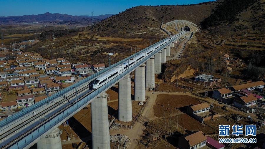 12月29日,一列动车组列车行驶在京哈高铁承沈段承德市境内。新华社发(王立群 摄)