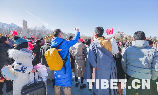 中国西藏网讯 2018年12月31日,年终岁末,西藏自治区拉萨市布达拉宫广场上演了《我和我的祖国》快闪活动。来自西藏的高校青年学生和市民群众向祖国深情告白,用快闪的方式庆祝新中国成立70周年。