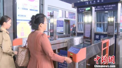 资料图:旅客凭身份证通过电子人脸识别检票闸机 李宇凡 摄