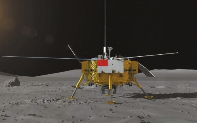▼与“嫦娥三号”着陆器相比,“嫦娥四号”着陆器增加了3根5米长的低频射电频谱仪天线。