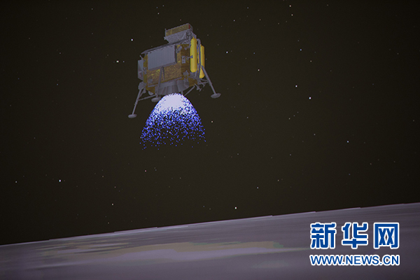 图为1月3日在北京航天飞行控制中心拍摄的降落过程(示意图)。新华社记者 金立旺摄