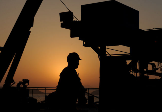 ◆“沈括”号船员在黄昏中工作。