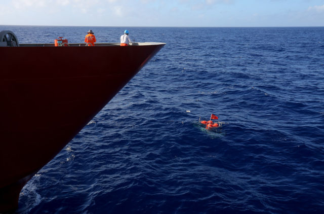 ◆“沈括”号停泊在马里亚纳海沟“挑战者深渊”海域。