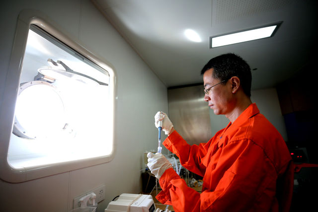 随着采样顺利进行,“沈括”号上的科研人员也投入到紧张的样品处理工作中,船上实验室里灯火通明、昼夜忙碌。