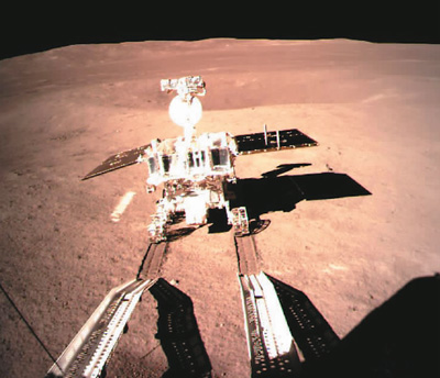 玉兔二号月球车通过转移机构驶上月面