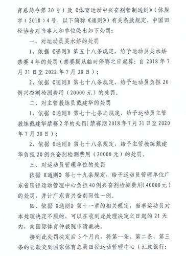 除此之外,田协也对主管教练员戴建华和广东省田协运动管理中心做出了相应的处罚。以下为声明全文: