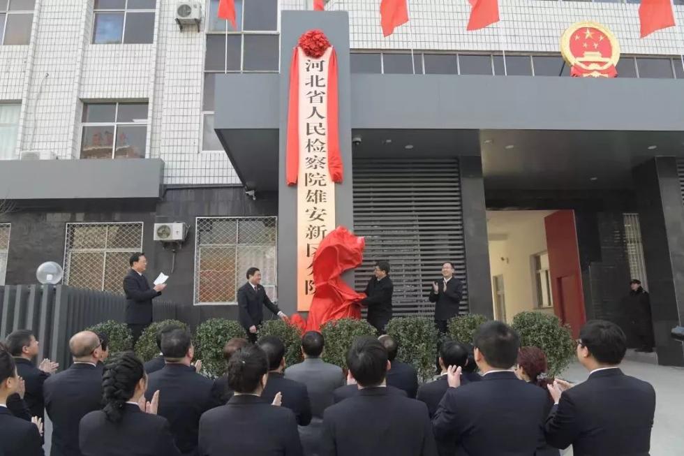 1月10日,河北省人民检察院雄安新区分院挂牌成立。河北省委常委、副省长,雄安新区党工委书记、管委会主任陈刚与河北省检察院党组书记、检察长丁顺生共同为雄安新区分院揭牌。最高人民检察院派员出席挂牌仪式。