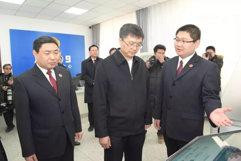 河北省委常委、副省长,雄安新区党工委书记、管委会主任陈刚(中),河北省人民检察院党组书记、检察长丁顺生(左一),参观雄安新区分院。