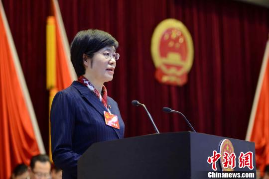 青岛市崂山区区长赵燕作《政府工作报告》。 路泉 摄