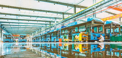 广东佛山(云浮)产业转移工业园氢燃料电动城市客车生产车间。梁启华摄(人民视觉)