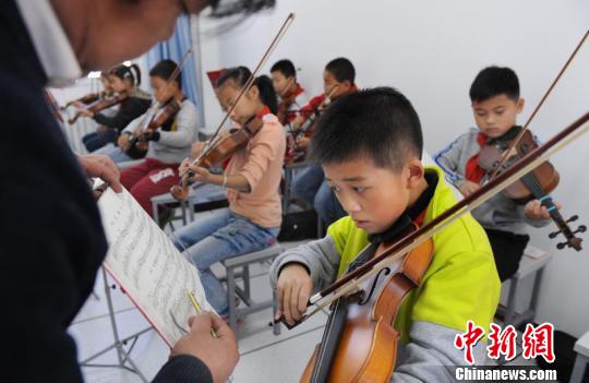 图为学生在学习小提琴。(资料图)榆林官方 供图