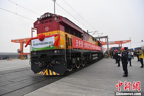 资料图:中欧班列(蓉欧快铁)从成都国际铁路港出发。中新社记者 张浪 摄