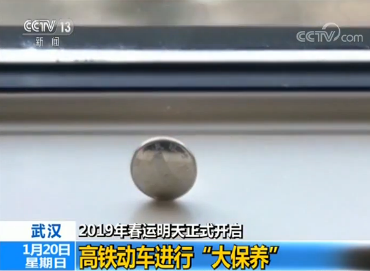根据测试,在一辆时速约达300公里的列车上,将一枚硬币放在窗台,如果硬币长时间保持竖立不倒,就意味着高铁在运行过程中十分平稳。春运前,动车组的“大保养”任务之一,就是调节车体的平衡,使旅客有更舒适的乘车体验。近几日,检修师们正在对列车进行车体平衡调试,并对高铁进行称重和尺寸测量。