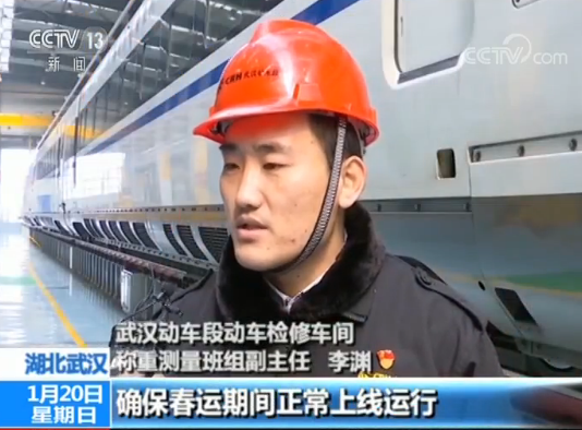 武汉动车段动车检修车间称重测量班组副主任 李渊:在春运之前我们要检修大概是159组(动车)左右 在春运前全部检修完毕 确保春运期间正常上线运行