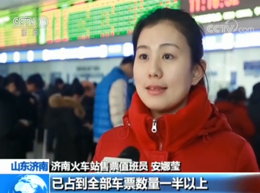 济南火车站售票值班员 安娜莹:从目前售票情况看,我们济南火车站发售学生票数量已占到全部车票数量一半以上,方向主要集中在省内的青岛、烟台、威海,以及省外的昆明、长沙、广州、乌鲁木齐以及东北等方向