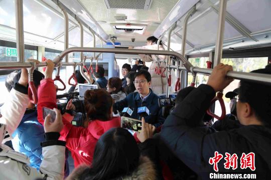 图为媒体记者乘坐“无人驾驶公交车”。 程扬 摄