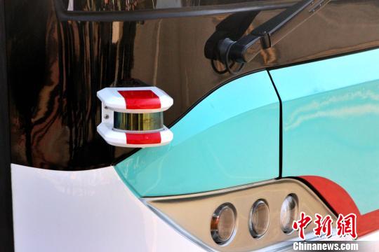 图为“无人驾驶公交车”上安装的激光雷达。 赵晓 摄
