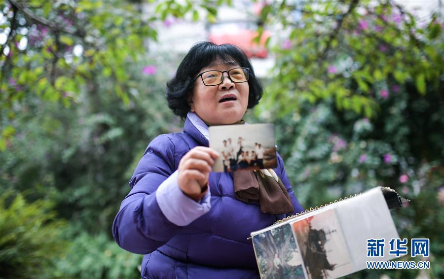 在四川省成都市金堂县,吴宛平手持老照片回忆在广东的故事(2018年11月28日摄)。新华社记者 薛玉斌 摄