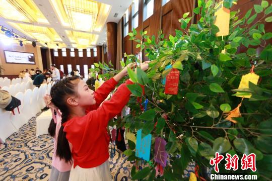 孩子们在活动现场纷纷记录下自己的梦想,亲手系在小树上,寓意孩子们能够像小树苗一样茁壮成长。 钟欣 摄