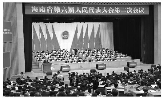 图为海南省第六届人民代表大会第二次会议现场。