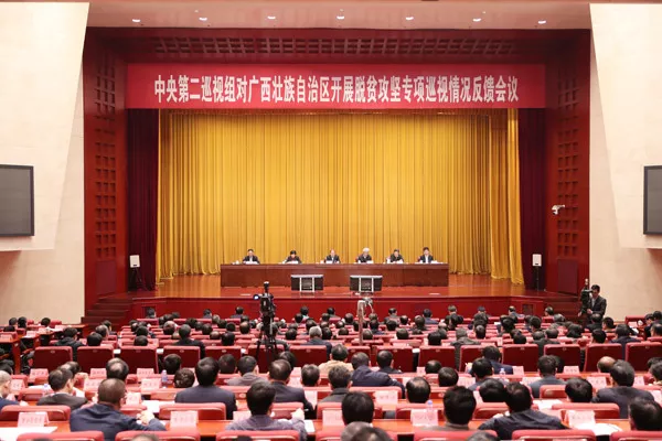 广西壮族自治区党委重视脱贫攻坚工作,学习贯彻习近平新时代中国特色社会主义思想和党的十九大精神特别是习近平总书记考察广西重要讲话精神,能够履行脱贫攻坚相关责任,精准识别工作做得比较细,完成贫困县脱贫攻坚专项巡视,按要求开展了扶贫领域腐败和作风问题专项治理,脱贫攻坚取得明显成效,为后续工作打下了较好基础,广大扶贫干部对脱贫攻坚工作作出了重要贡献。巡视中,巡视组发现和干部群众反映了一些问题,主要是:学习贯彻习近平总书记考察广西重要讲话精神不够深入,落实中央脱贫攻坚政策存在偏差,一些项目实施变形走样;落实脱贫攻坚主体责任不够到位。一些贫困地区以脱贫攻坚统揽经济社会发展全局不够,扶贫资金管理不够到位、使用不够精准;抓党建促脱贫力度不够,贫困地区引人、留人困难,一些贫困村党组织薄弱;整改主体责任落实不够到位,有的整改重销号轻长效,重形式轻结果,举一反三不够,整改进度滞后。纪检监察机关落实脱贫攻坚监督责任不够有力,运用“四种形态”不够精准,协调推进扶贫领域腐败和作风问题专项治理不够到位。同时,巡视组还收到反映一些领导干部的问题线索,已按有关规定转中央纪委国家监委、中央组织部等有关方面处理。