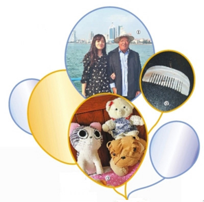 图①:王美莹和爷爷合影。图②:爷爷为王美莹挑选的贝壳梳子。图③:王佳父亲送的玩具娃娃。