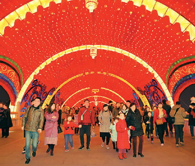 游客参观西安大唐芙蓉园新春灯会。新华社记者 邵 瑞摄