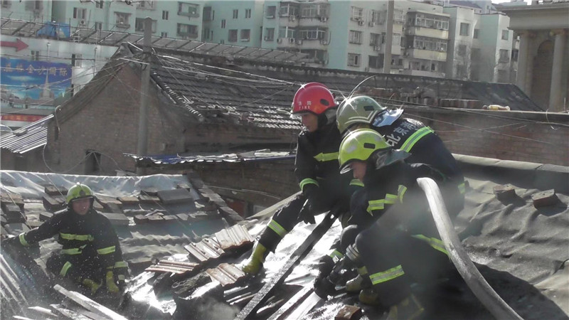 付帮龙与战友在北京丰台一处老旧小区参与灭火救援(受访者供图)