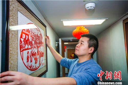 船上不乏能工巧匠,船员们自己动手剪得窗花装裱后挂在走廊。远望3号船供图