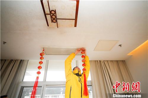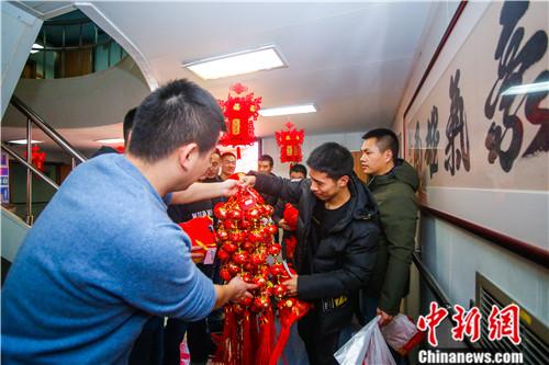 船员们领取装饰用品,红色灯笼挂上墙,“年味”来了!远望3号船供图