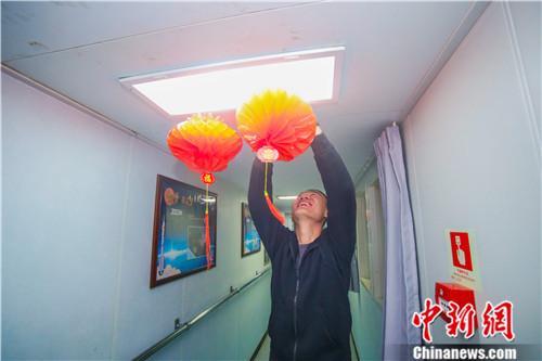 船员们在走廊挂上红灯笼,不知道此刻有没有想家!远望3号船供图