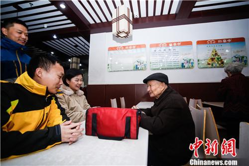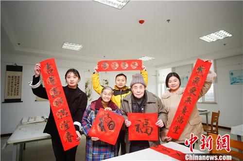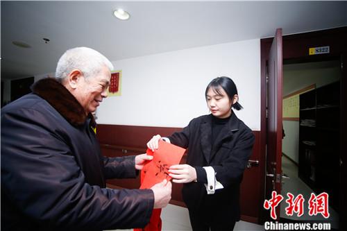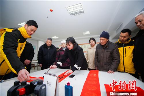 “书法家”泼墨挥毫,为老人书写春联。远望3号船供图
