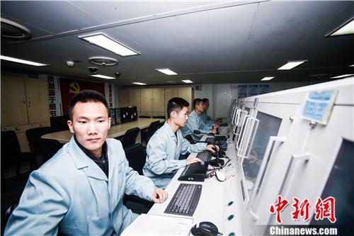 在某机房内,科技人员正在参加某项专业演练。远望3号船供图