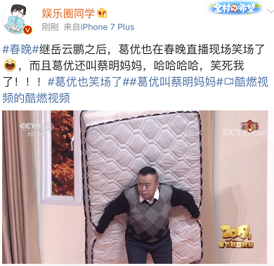 在过往涉及保健品诈骗的新闻里,有提及推销往往会打亲情牌等招数,甚至“有人跪下喊爸妈”。而这一小品将此情节搬上了春晚舞台,为了“诱骗”老人为床垫买单,葛优甚至管潘长江、蔡明叫“爸妈”。很多网友看完小品后留言称,节目笑点满满,很接地气,甚至是“我的家庭的翻版”。