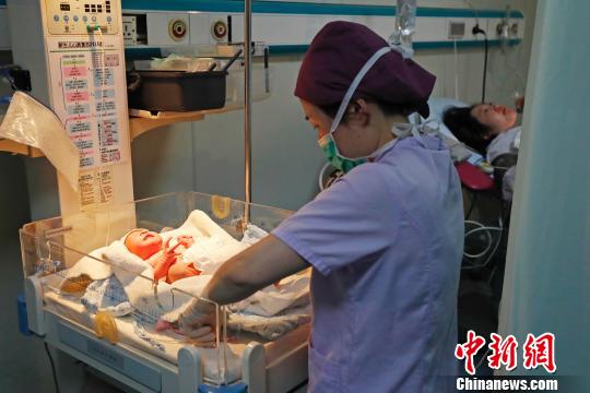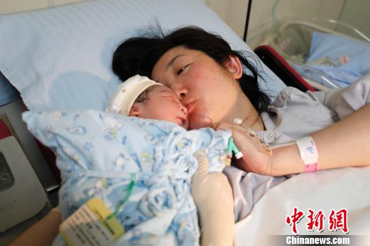 母亲第一时间见到了自己的“金猪宝宝”并亲吻。 殷立勤 摄