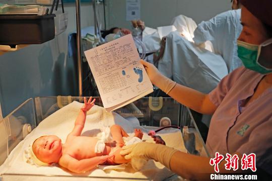 凌晨0:03分,上海市第一妇婴保健院的产房里迎来了第一只“金猪宝宝”。 殷立勤 摄